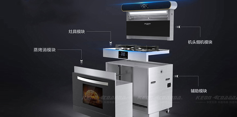 新技術、新工藝、新材料,集成灶十大品牌、廚電行業十大品牌科恩第五代模塊化集成灶的出現,將集成灶推到了新高度,將煙機、灶具、消毒柜、蒸烤箱模塊獨立,加強隔離性的同時又提升了產品的安全性、穩定性!集成灶十大品牌科恩第五代模塊化集成灶各個模塊線路分離,杜絕了安全隱患,為迎合年輕消費群體需求。科恩第五代模塊化集成灶還自帶WIFI連接功能,實現了智能操作、聽歌、看電影等功能,徹底讓消費者實現了真正的智能化時代!