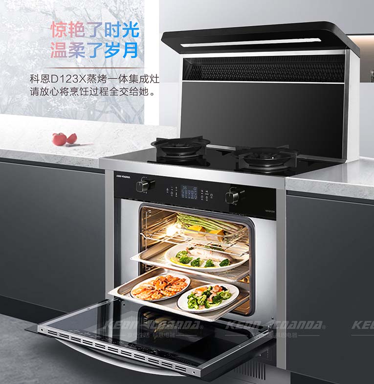 科恩D123X變頻蒸烤消一體智能集成灶為什么頗受消費者的喜愛,原因有以下幾方面:1.省空間:科恩D123X集合煙機、燃氣灶、蒸箱、烤箱、消毒柜等多種功能于一體,不僅節(jié)省空間還能省下一米櫥柜空間。2.吸油煙能力強:比起傳統(tǒng)煙機,科恩D123X離灶臺距離更近,吸力更強,在油煙產(chǎn)生的第一時間就可以將其吸走,另外油煙的過濾網(wǎng)采用不沾油特氟龍材料,易清洗、耐高溫、抗腐蝕!3.大火力爆炒:尤其是爆炒菜,D123X鑄鐵鍋架帶雙聚能環(huán)設計,四通道獨立引射5.0KW大火力猛火爆炒,寬裕立體上進風充分燃燒,提高燃燒效率,降低一氧化碳排放。