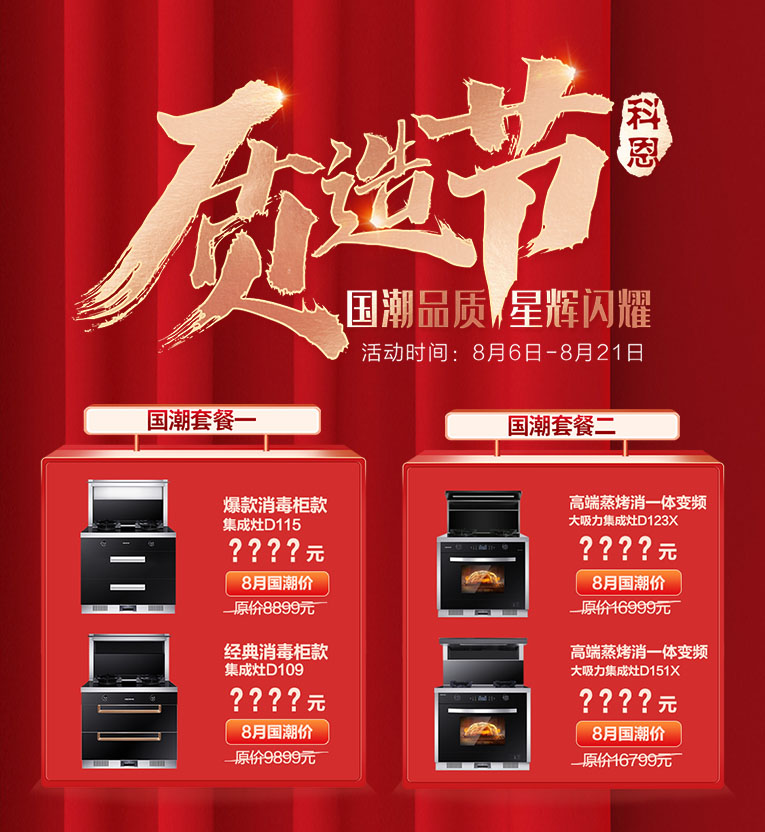 集成灶十大品牌、廚電行業十大品牌科恩八月質造節大型全國促銷活動強勢來襲,國潮品質,星輝閃耀,絕對給你想不到的洪荒之“利”!