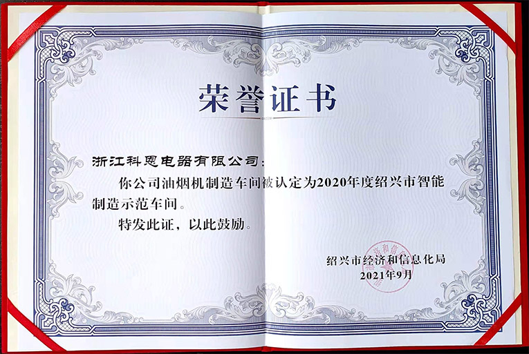 進(jìn)一步強(qiáng)化標(biāo)桿示范引領(lǐng),全面提升企業(yè)“新智造”水平,2020年度紹興市傳統(tǒng)產(chǎn)業(yè)智能化改造項(xiàng)目申報(bào)和評(píng)審認(rèn)定工作開展,經(jīng)企業(yè)申報(bào)、各地初審、資料審閱、現(xiàn)場(chǎng)踏勘等環(huán)節(jié),浙江科恩電器有限公司油煙機(jī)車間榮獲“2020年度紹興市智能制造示范車間”。