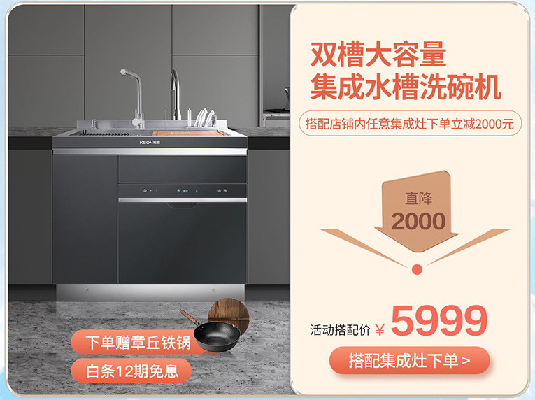 雙11搭配購實惠,集成水槽洗碗機,清洗、保潔、收納、存放四合一,給您不一樣的廚房樂趣,科恩KN0A3集成水槽洗碗機雙11直降2000,活動搭配價僅需5999;