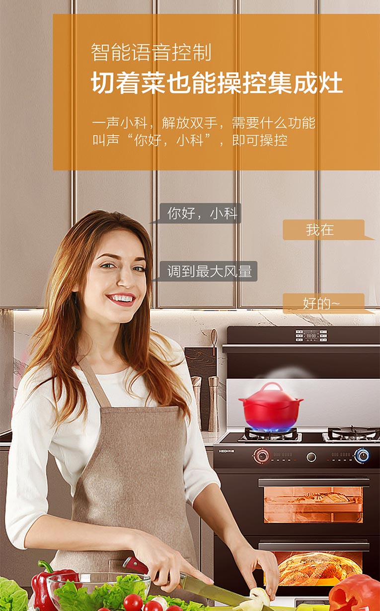 另外,科恩E450上下蒸烤集成灶還搭載智能語音控制,“你好小科”輕松掌控集成灶,大吸力無油煙,能蒸善烤美味雙收,一次性給你滿漢全席。這個冬天,安排一下集成灶十大品牌、廚電行業十大品牌科恩E450上下蒸烤集成灶,解放雙手,暖心又暖胃!