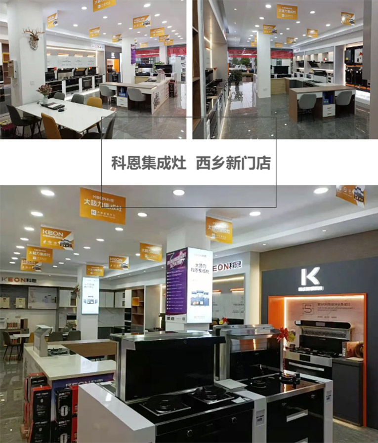 科恩西鄉專賣店融入了科恩全新新門店形象,優雅的環境、火爆的氛圍、精心準備的禮品,無一不彰顯著科恩集成灶的強大品牌實力。