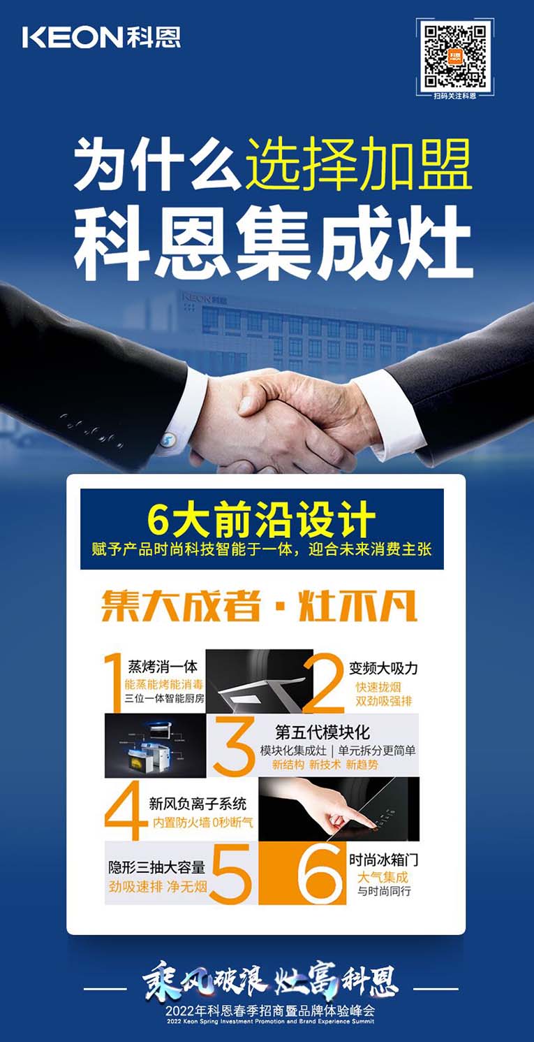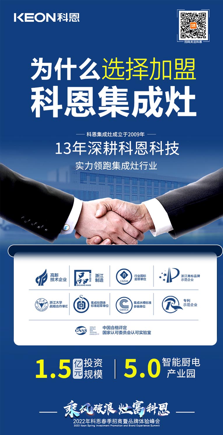 科恩集成灶2022春季招商全面開啟,搶占市場,共贏未來!