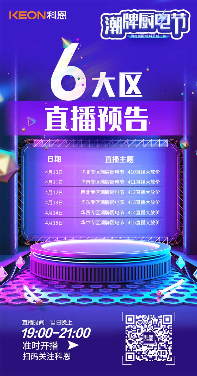 除此之外,為了更好地滿足消費(fèi)者足不出戶就能選購心儀的集成灶,科恩集成灶#廚房新國潮,科恩新三件#,潮牌廚電節(jié),全國六大戰(zhàn)區(qū)同時發(fā)力,給予貼心服務(wù)!