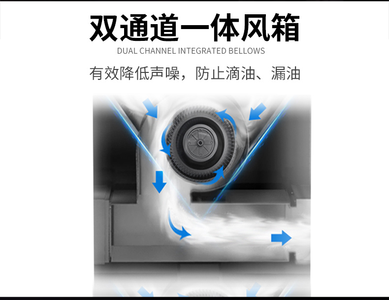 噪聲是影響兒童智力和身體發育的大敵,據統計,長期在80分貝以上噪音環境中生活,致聾率可高達50%,科恩D511采用雙通道一體靜音風箱結構,具有吸風量大、超靜音、不回煙跑煙,防止滴油漏油等特點,避免孩子遭受廚房噪音,學會做菜,愛上廚房!