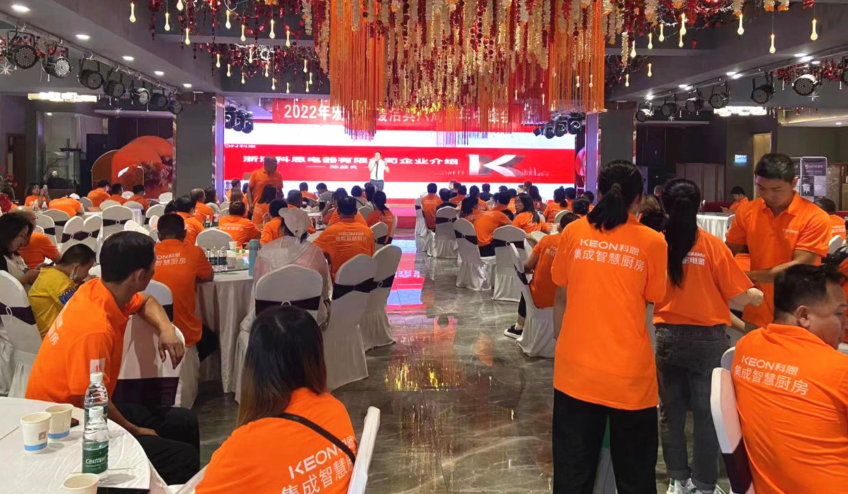 近日,科恩電器受邀參加2022年宏達水暖潔具八周年年中峰會暨年中訂貨會,科恩集成灶以其雄厚企業實力、行業領軍品牌、高質量高性價比等優勢在本次訂貨上備受青睞!峰會現場座無虛席,熱鬧非凡,會上,科恩移動水吧事業中心總經理陳燊良為在座嘉賓介紹了科恩13年來的發展歷程以及取得的多項榮譽、成就,科恩集成灶擁有行業頂尖的定制化柔性生產系統、精工制造中心、技術中心、廚房文化科技體驗館以及全智能物流管理系統,實力領跑集成灶行業!