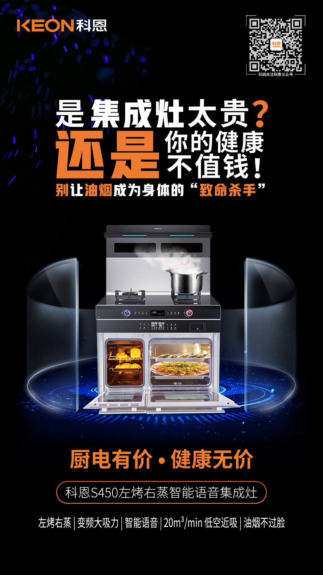 置身油污積聚,煙熏火燎的黏膩廚房,油煙隨空氣侵入呼吸道,造成不可逆傷害,輕則導致“油煙綜合癥”,重則易誘發身體疾病,到底是集成灶太貴,還是你的健康不值錢?!廚電有價,健康無價,別再讓油煙成為身體的“致命殺手”!