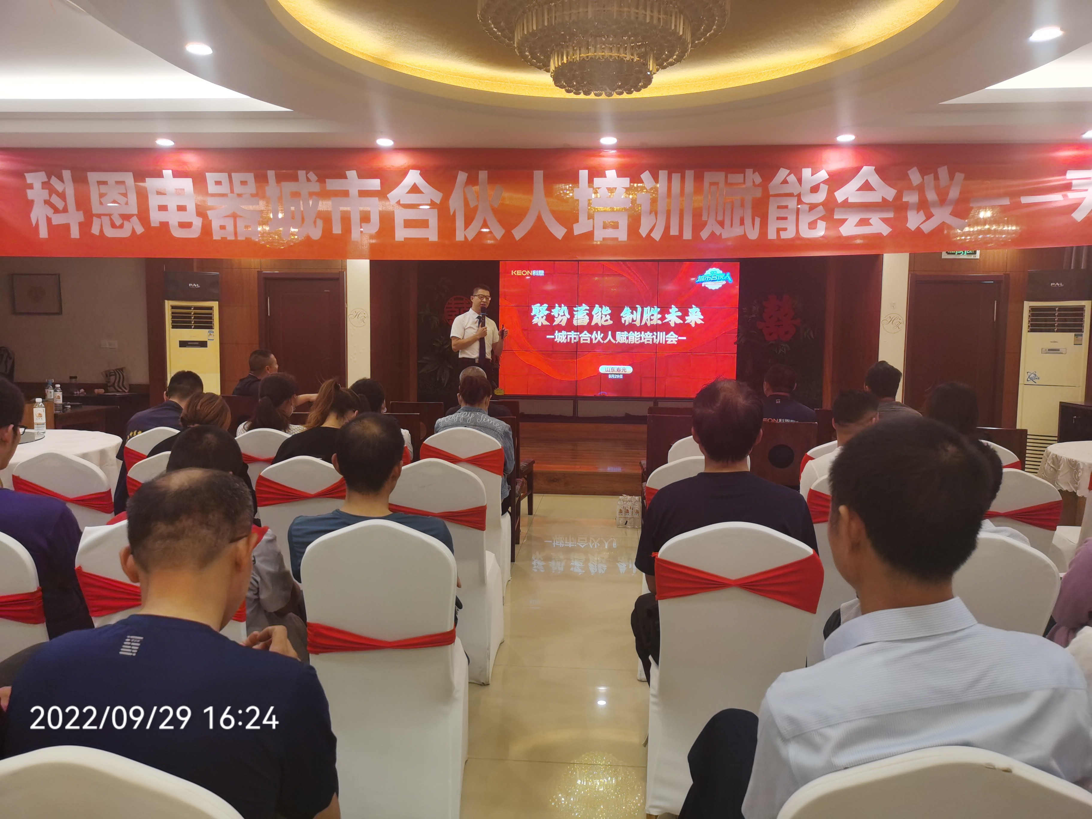 9月29日,科恩電器在山東壽光舉辦的“聚勢蓄能,致勝未來”城市合伙人培訓賦能會議取得圓滿成功!來自山東各地的百余名豪杰好漢齊集壽光,共同參與此次城市合伙人培訓賦能會議,山東省區域經理王鵬程致歡迎詞!