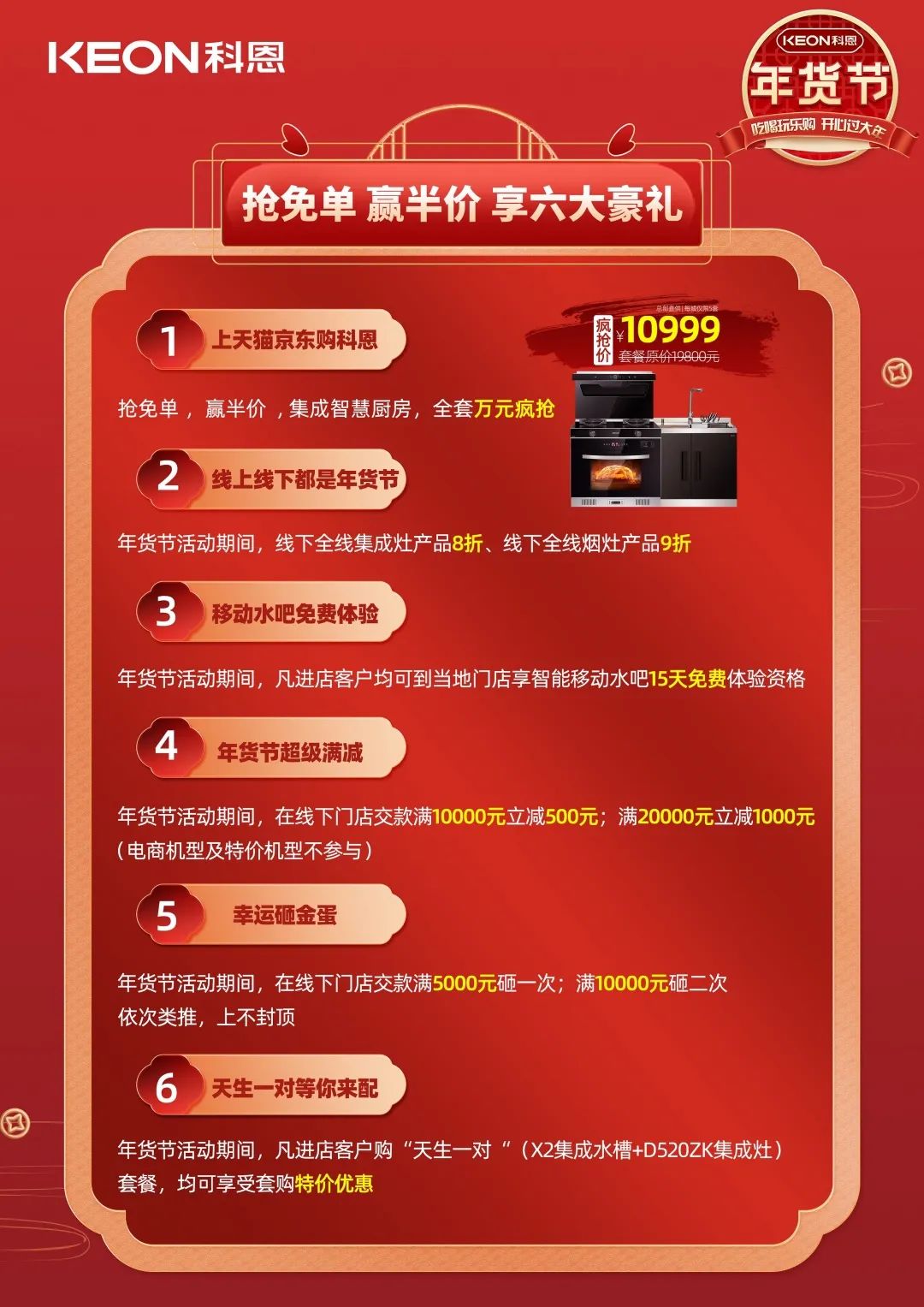 活動期間,線下全線集成灶產(chǎn)品8折、線下全線煙灶產(chǎn)品9折