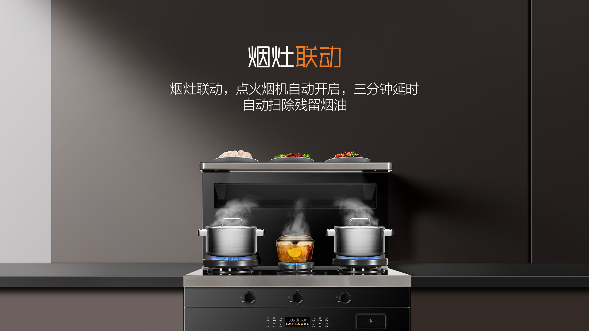 與普通煙灶聯(lián)動不同,A3系列打開灶具的同時煙機(jī)與照明燈同時打開,且煙機(jī)可根據(jù)火力大小自動調(diào)節(jié),無需再手動調(diào)節(jié),風(fēng)隨火動廚房更智能。