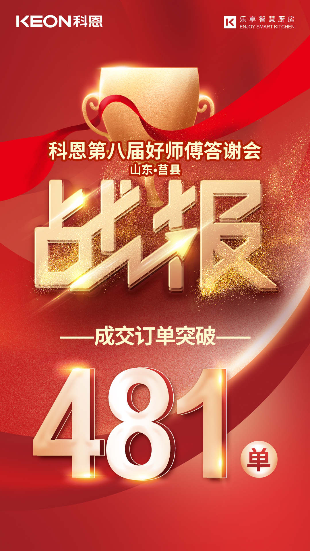 全國科恩專賣店感恩回饋活動正在如火如荼進行413日晚,科恩山東莒縣專賣店接力圍場專賣店開展“科恩電器第八屆好師傅答謝會”,最終481單的好成績圓滿落幕。