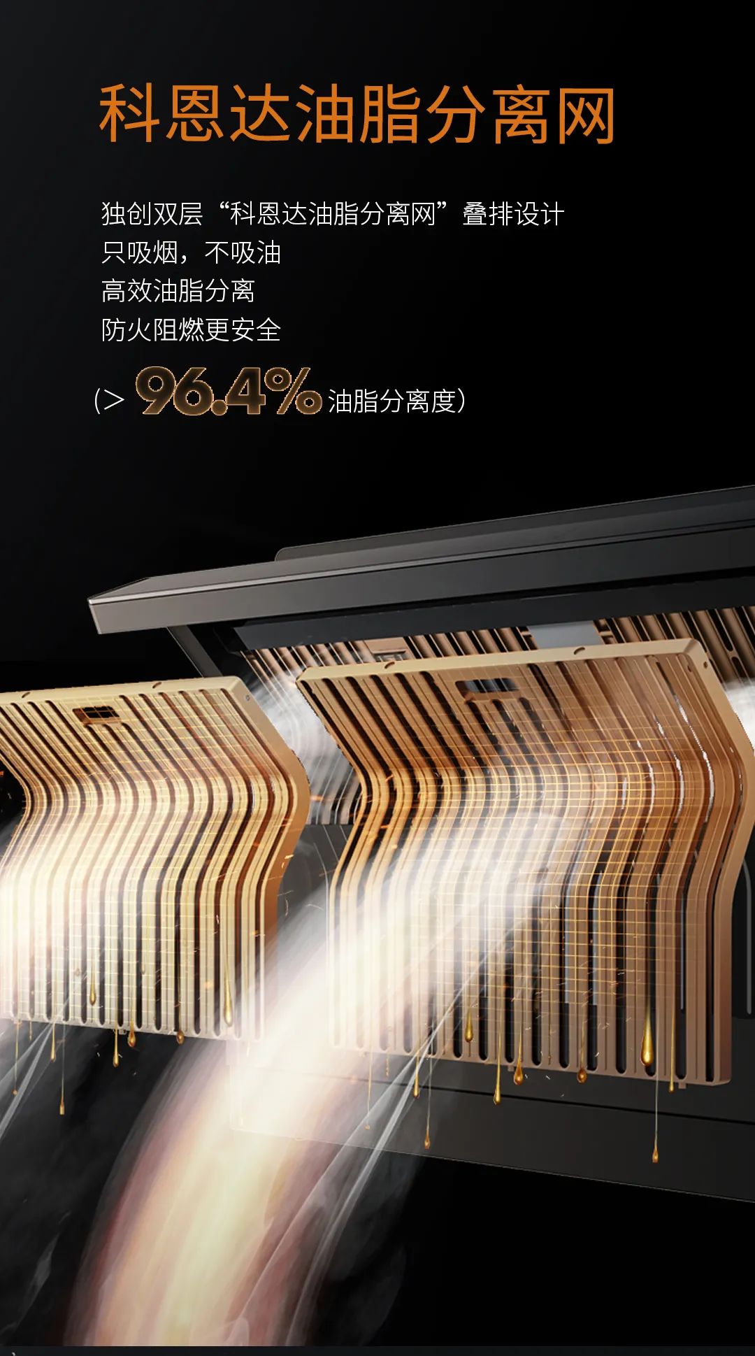 6K省心超體驗(yàn)二:科學(xué)設(shè)計(jì)免清洗,耐用省心科恩達(dá)油脂分離網(wǎng)完美實(shí)現(xiàn)煙機(jī)免清洗。科恩達(dá)油脂分離網(wǎng)可實(shí)現(xiàn)高效油脂分離,油脂分離率>96%,實(shí)現(xiàn)油脂不進(jìn)門,煙機(jī)免清洗的理想狀態(tài)。