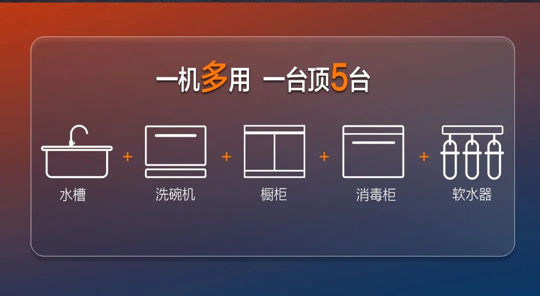 一臺集成水槽洗碗機,相當于:水槽+洗碗機+櫥柜+消毒柜+軟水機!一平方實現解放清洗自由,解放雙手就是現在!
