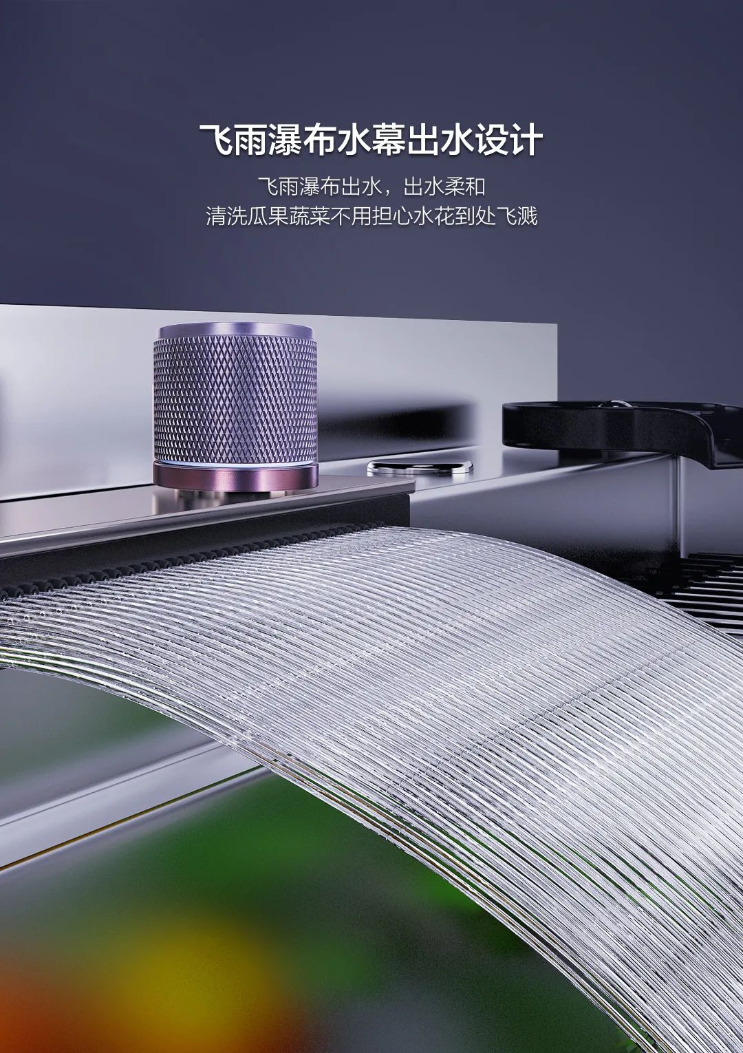 科恩X6L集成水槽選用了50L大容量單槽,可輕松解決鍋具清洗難題。且X6L采用了抽拉龍頭可360度無死角,各種用水轉換。特有的飛雨瀑布采用仿瀑布出水,快速清洗藏匿在蔬菜果皮內部及表皮的泥垢、農藥殘留。