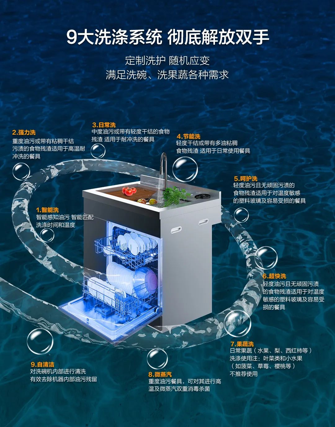 定制洗護 隨機應變:9大洗滌系統,滿足洗碗、洗果蔬各種需求