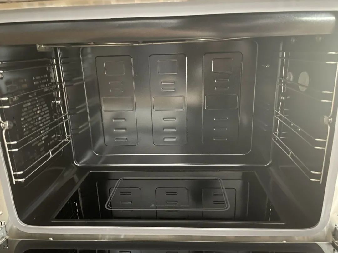 蒸烤箱內(nèi)部采用一體拉伸搪瓷內(nèi)膽,不易積食物殘?jiān)⑺负陀蜐n,清理更便捷。