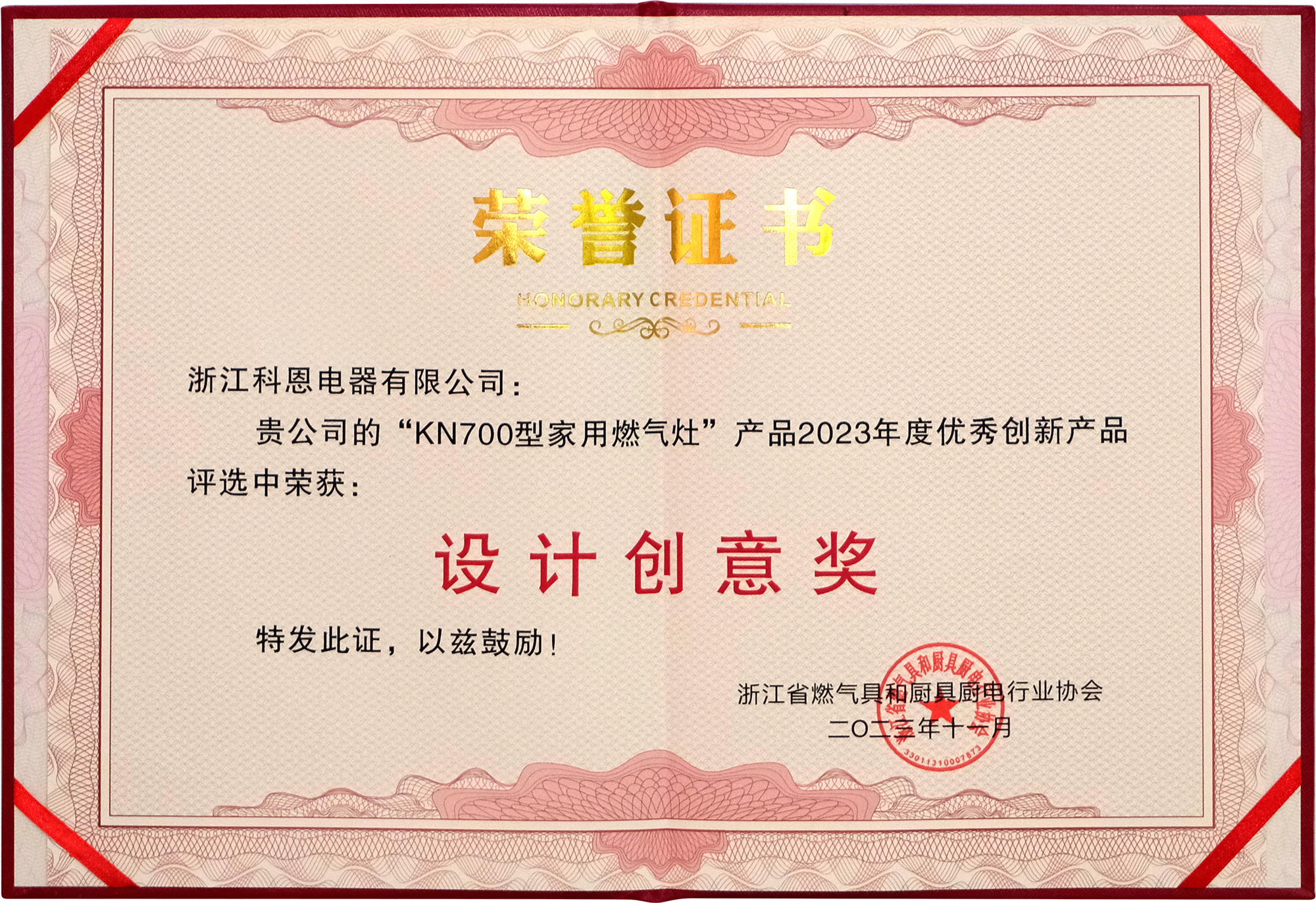 會上,浙江科恩電器有限公司憑借著資深的行業地位、過硬的研發實力、卓越的品牌口碑,再一次當選浙江省燃氣具和廚具廚電行業協會——理事單位”!