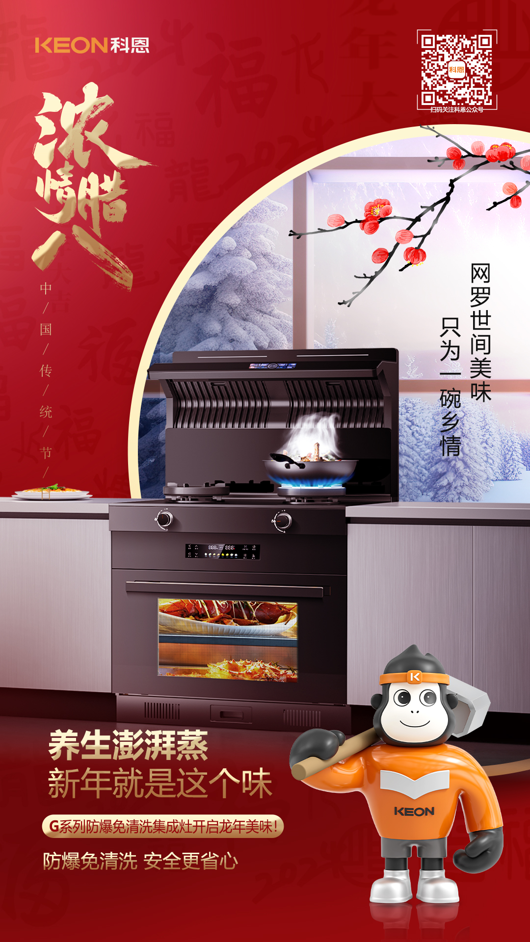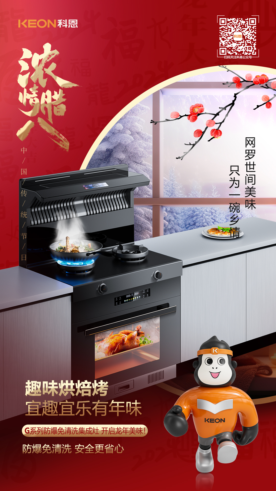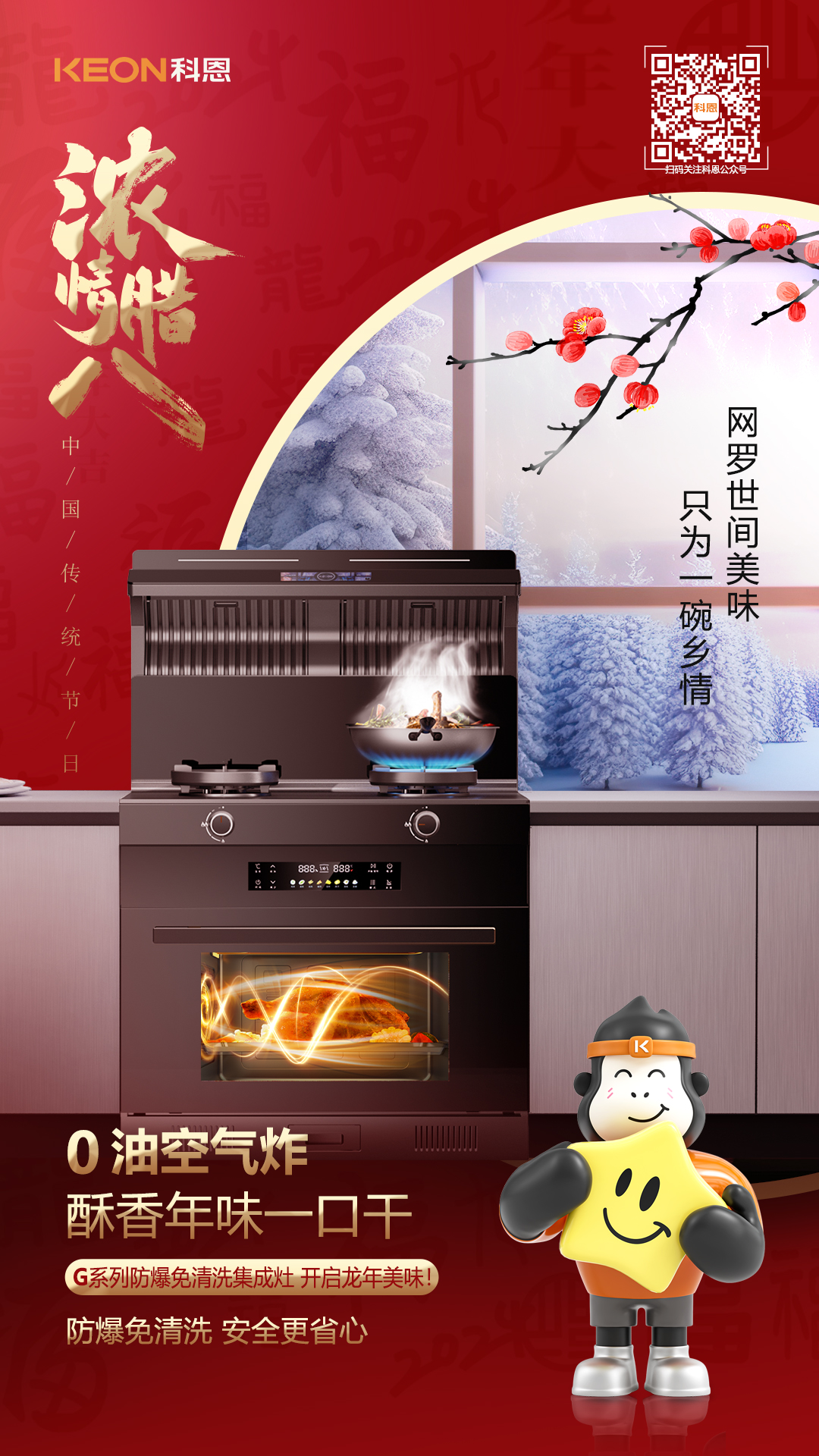 科恩G500防爆免清洗集成灶專業烘烤,紅外加熱高速升溫,1°C精控,3D立體熱烤,讓你在家也能體會趣味烘焙。
