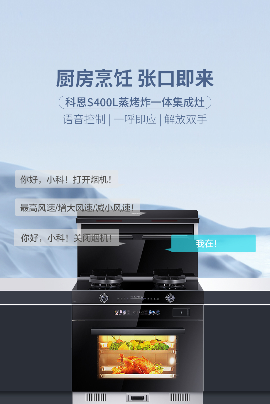 廚房烹飪,張口即來!一句你好小科,開啟一天烹飪生活!S400L內(nèi)置語音控制一呼即應(yīng),真正解放雙手。