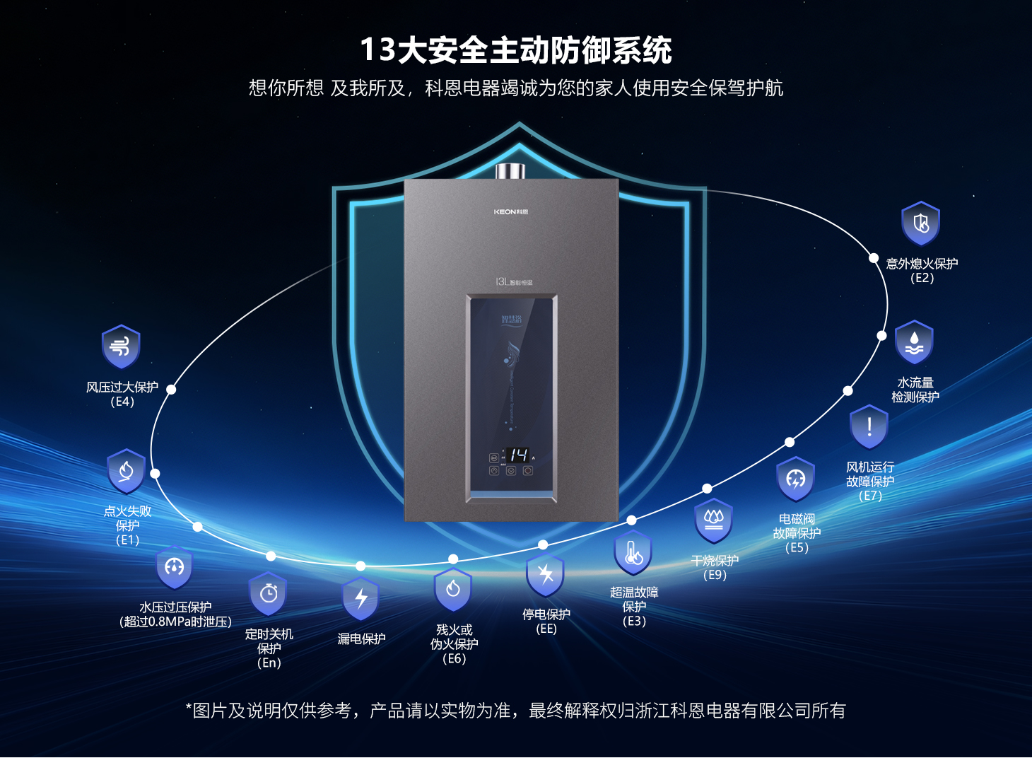 安全節能雙在線,守護全家健康。智能分段燃燒技術,控溫更快更精準。熱效率超89%,節能又環保,銅管納米防腐涂層,耐用更省心,定時關機提醒通風,智能又便捷,13重堡壘式保護全方位守護,每一項設計,都藏著對家人的貼心。