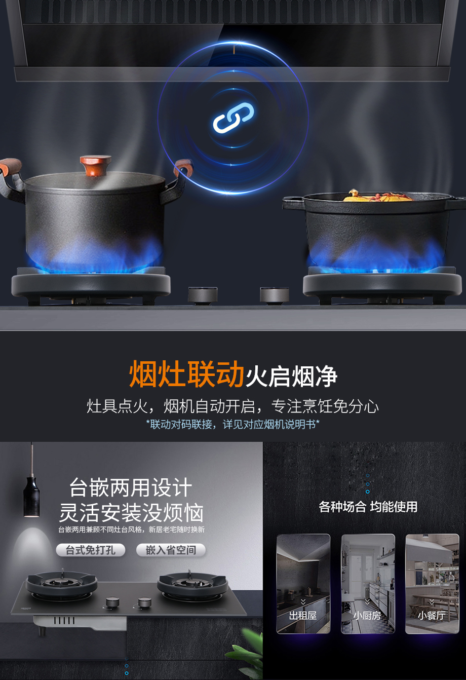 輕松換裝,適配老房廚房。小板灶設(shè)計(jì)多尺寸適配,輕松換裝不折騰,亞膜水霧鋼化玻璃臺(tái)面,油砂納米工藝防粘,湯汁滴落一擦即凈,清潔無(wú)憂,懶人也愛(ài)下廚。