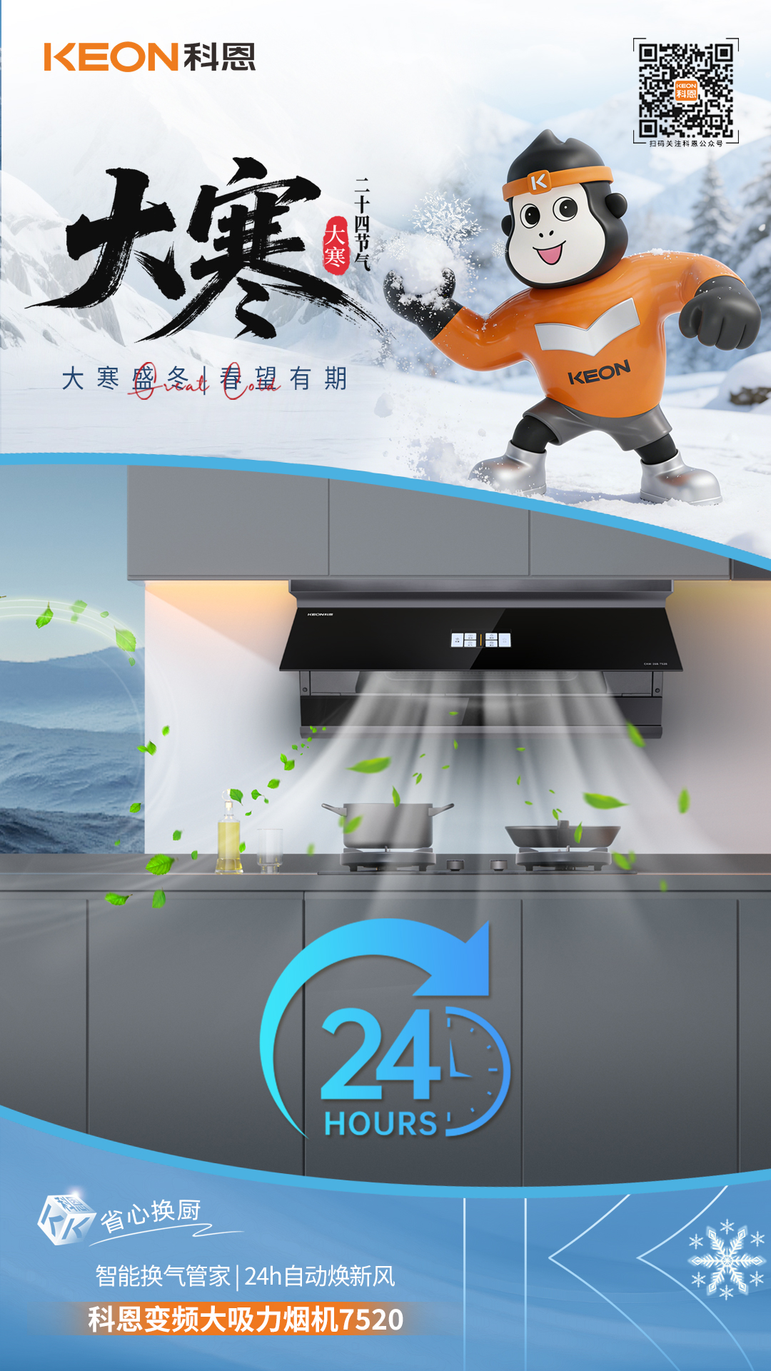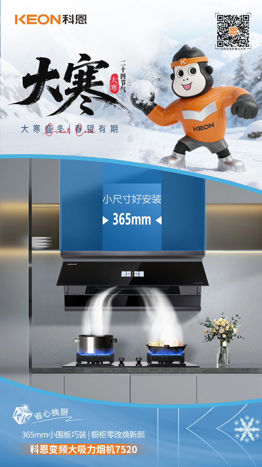 寒天煮暖,無(wú)煙煥新!大寒歲暮天寒,廚房煙火正濃!舊機(jī)排煙乏力,油煙裹寒?dāng)_人,科恩7520登場(chǎng),解鎖暖冬烹飪新境。櫥柜零改即裝,油煙轉(zhuǎn)瞬無(wú)蹤,讓寒日下廚,只剩鮮香不見煙。