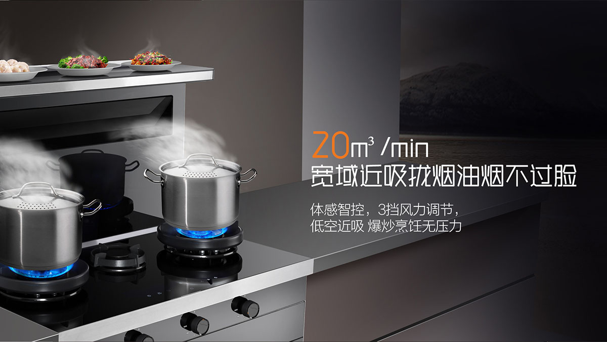 - 21.5m3/min寬域近吸攏煙,油煙不過(guò)臉,烹飪更隨心
