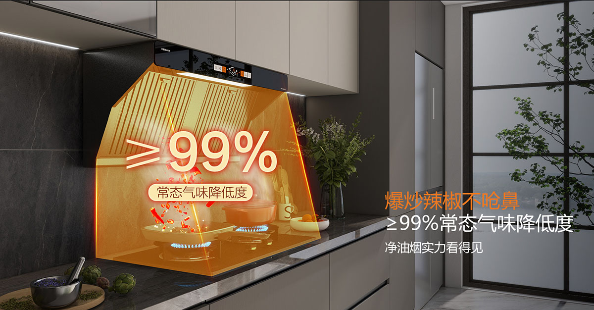 颶風(fēng)大吸力,≥99%常態(tài)氣味降低度,爆炒辣椒不嗆鼻