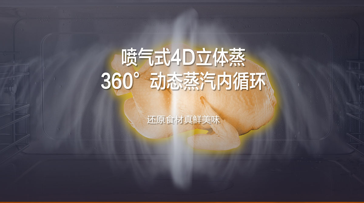- 噴氣式4D立體蒸,360°動態(tài)蒸汽內(nèi)循環(huán),還原食材真鮮美味
