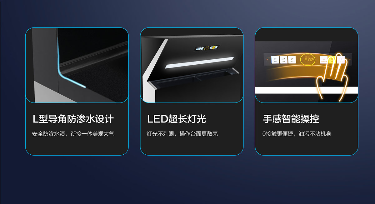 - 手感智能操控,0接觸更便捷,油污不沾機身
