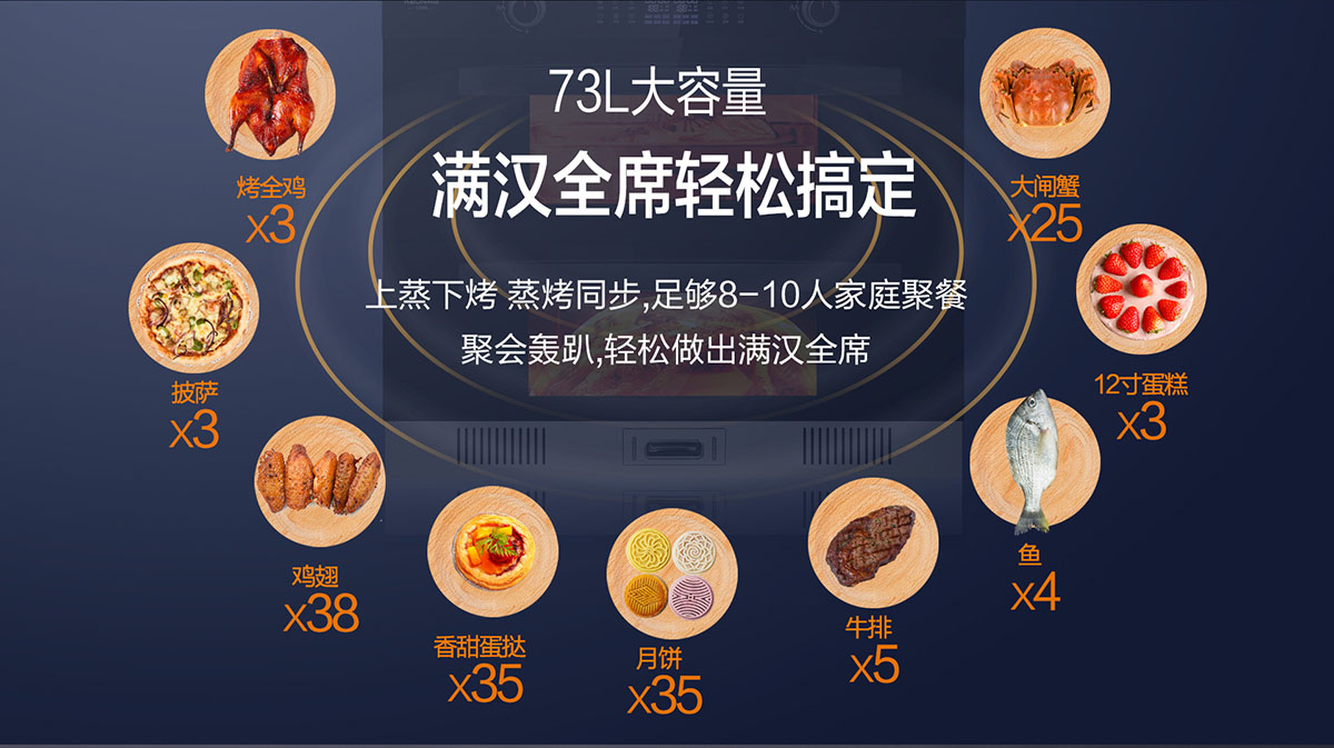 - 蒸烤消一體,智能廚房一步到位,滿足各種食材烹飪