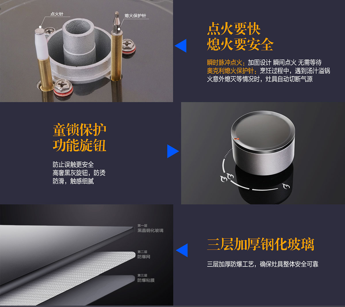 - 黑晶鋼化玻璃面板,光滑耐腐蝕、抗氧化、易清潔