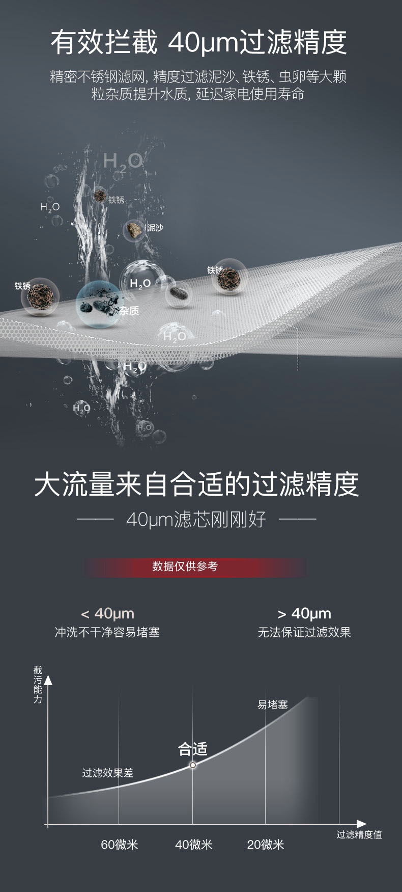 - 40μm過濾精度,精密不銹鋼濾網(wǎng),提升水質(zhì)