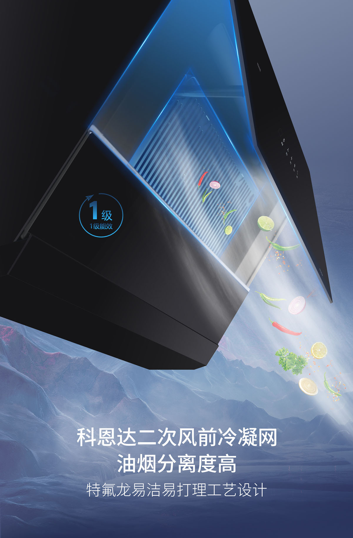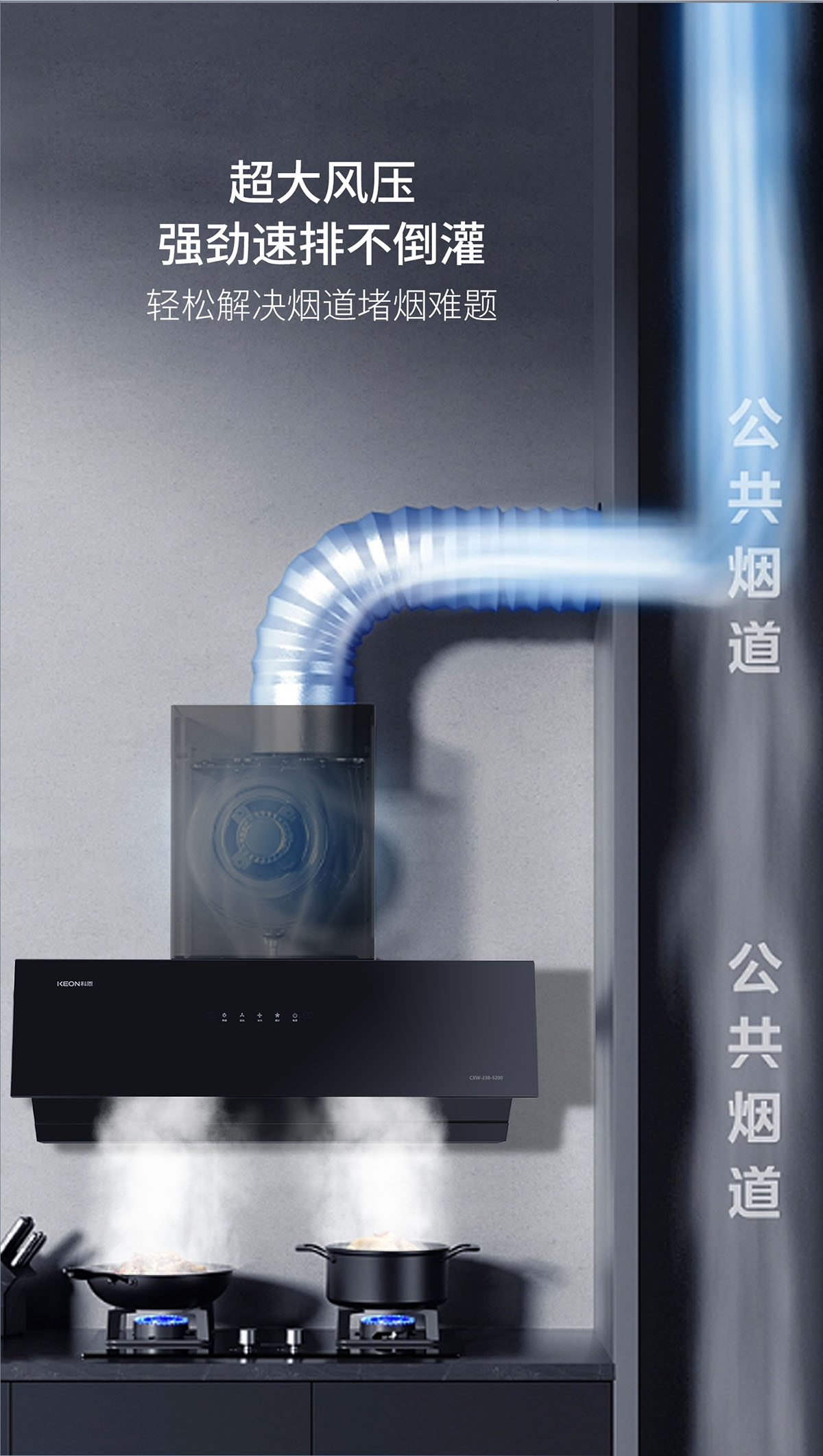• 23m³/min颶風吸力,瞬吸油煙,打造無煙廚房