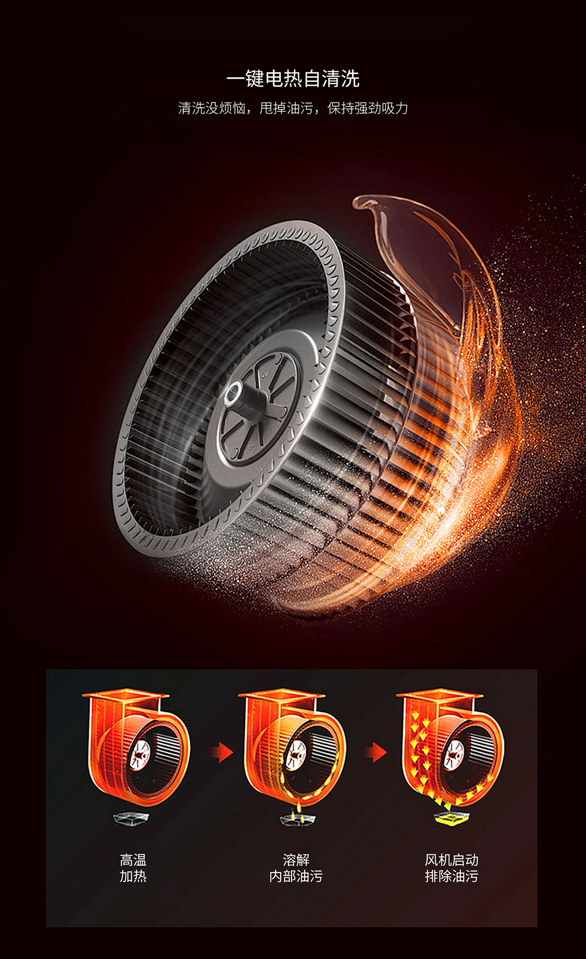 - 電熱自清洗,甩掉油污,保持強勁吸力