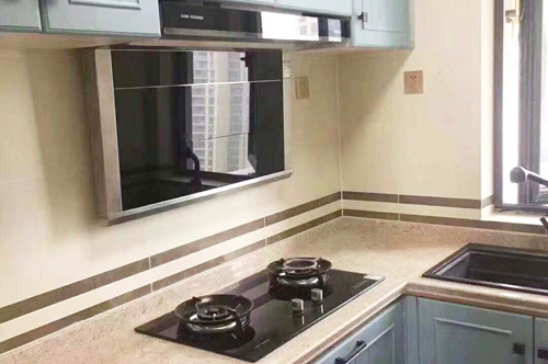 科恩四川經(jīng)銷商提供的T35煙機(jī)和不銹鋼水槽廚房實(shí)景